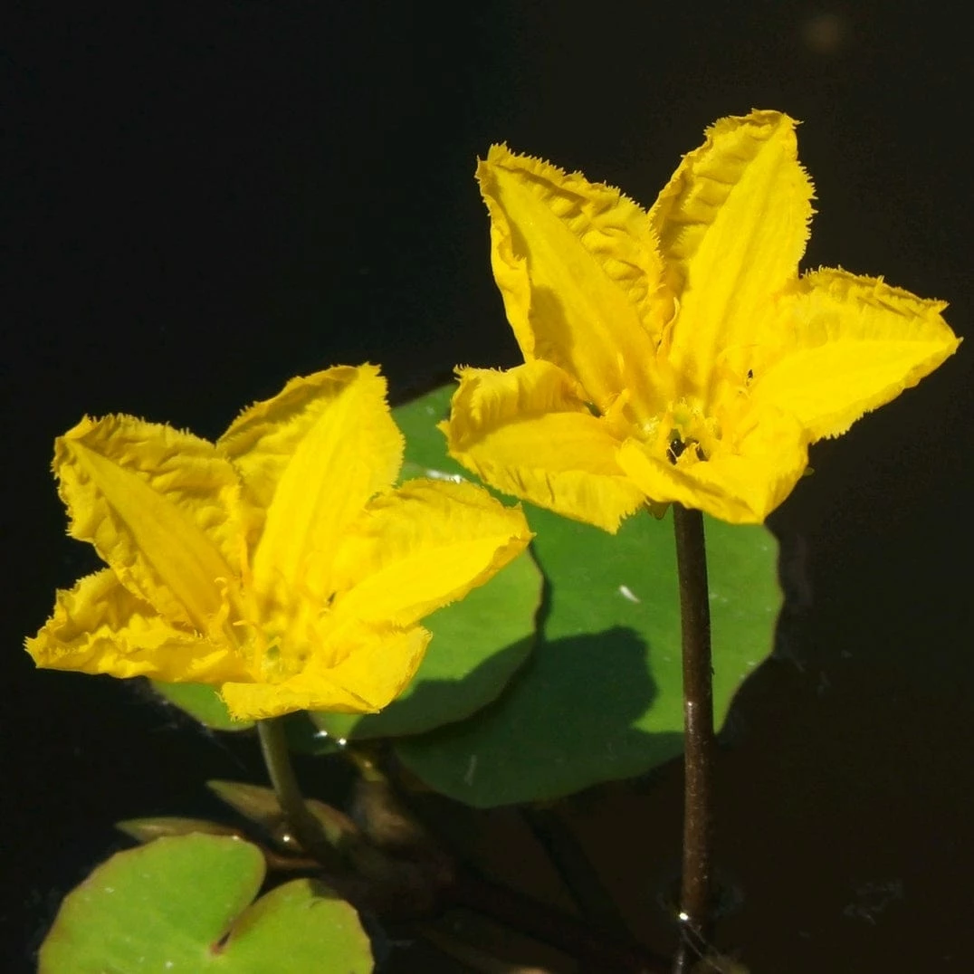 - Floating emerald green, rounded leaves create the perfect backdrop for star-shaped bright yellow flowers which rise on long stalks above the water